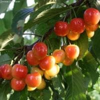 Саженцы черешни Наслаждение станут настоящей находкой для тех, кто совсем не любит кислинку в ягодах. Крупные сердцевидные плоды этого растения имеют невероятно сладкую мякоть, окрашенную в желтый цвет. А вот цвет самих ягод намного интереснее и игривее: на желтоватом фоне ярко рдеет оранжево-розовый румянец, который насыщается и «осмелевает» по мере созревания черешни. Сорт идеально подходит для выпечки и консервации, ведь отделить от мякоти косточку не составит никакого труда. А какой сок получается из черешни этого сорта!
